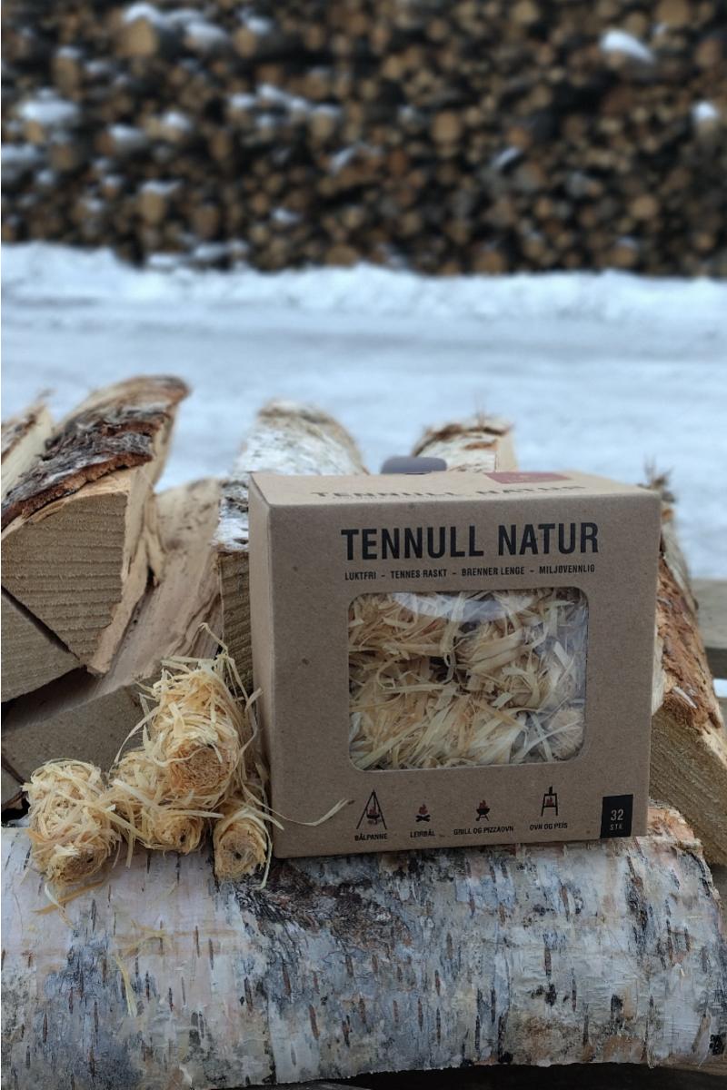 32stk tennull av trefiber med voks i esken. Fint og naturlig for opptenning. Brenner 6-8 minutter